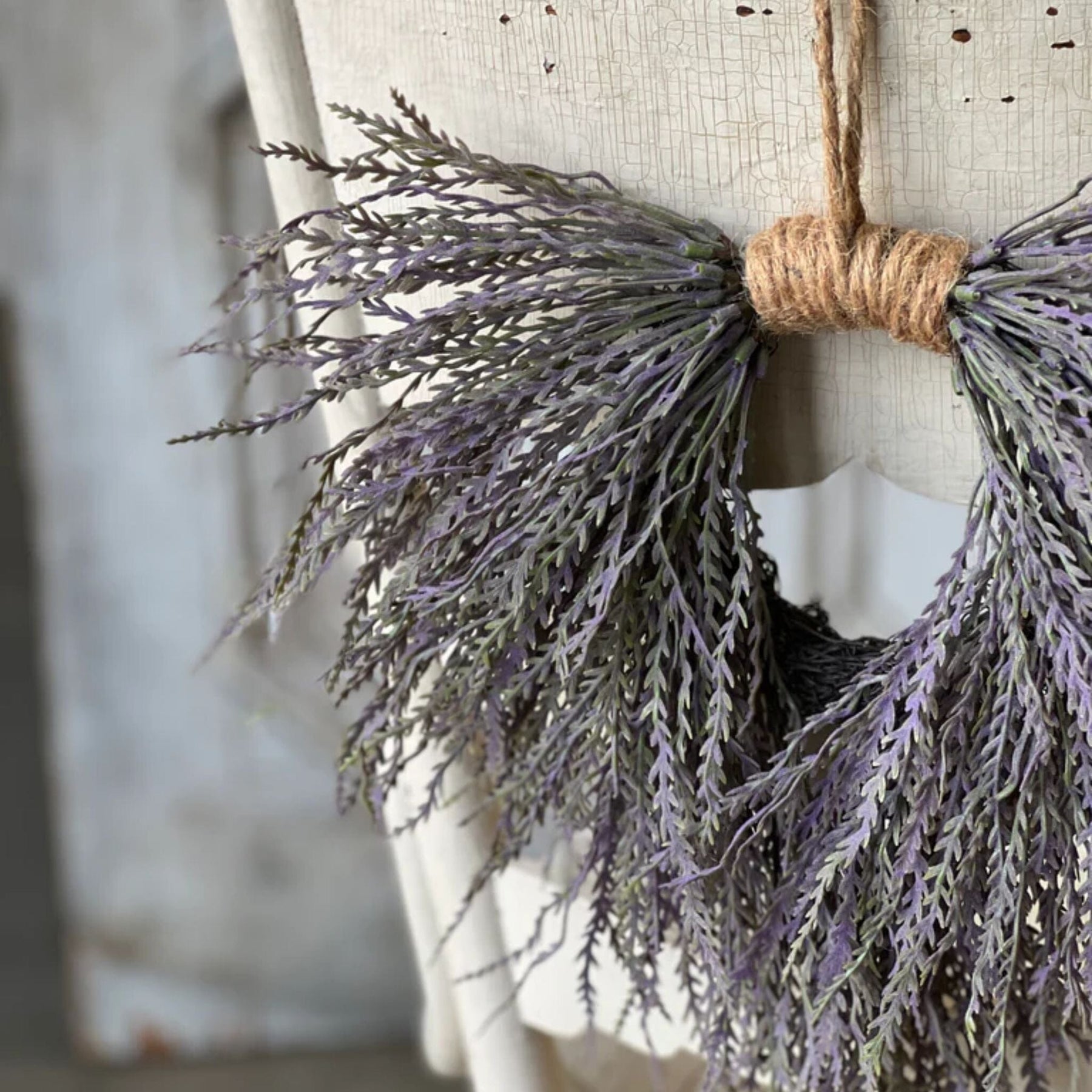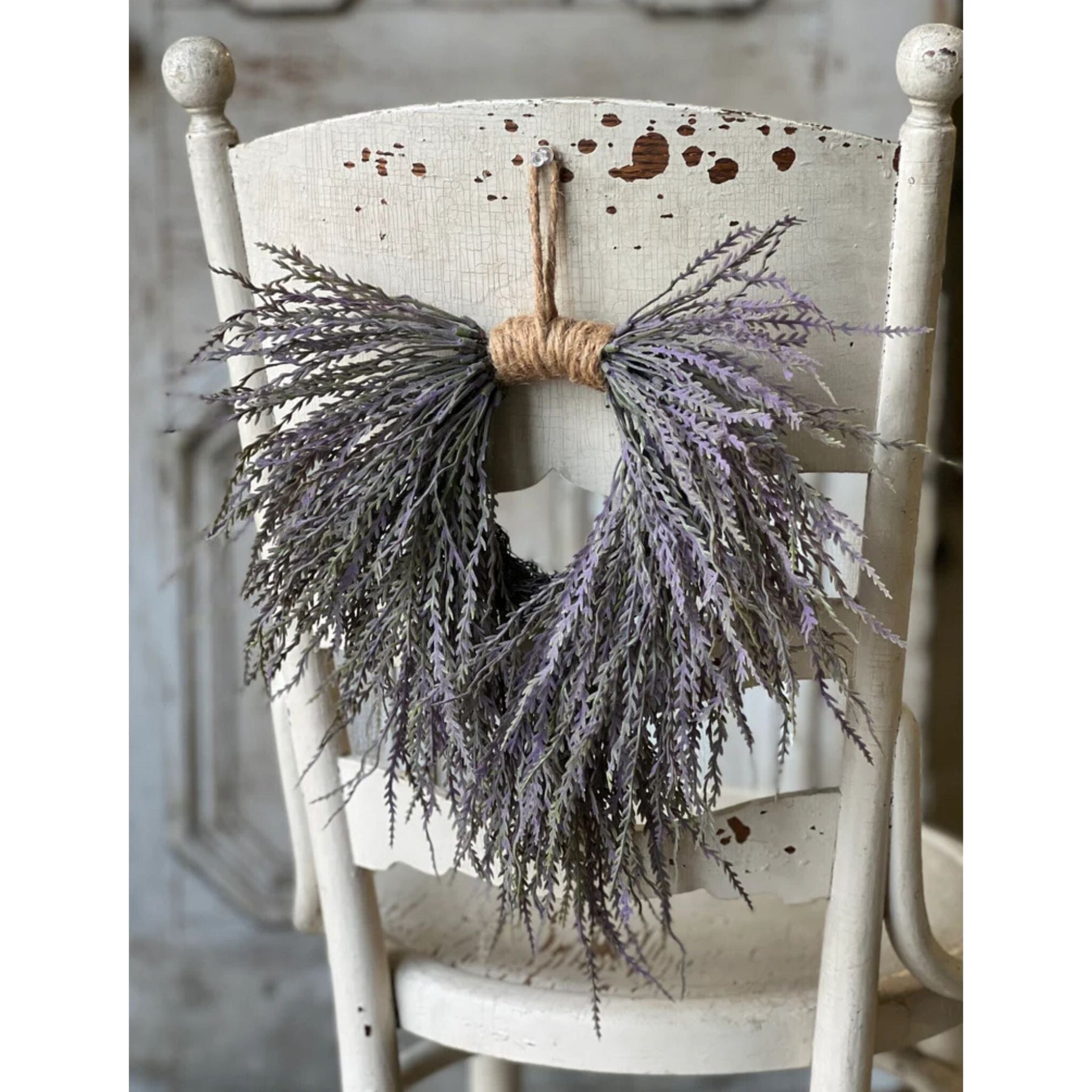 The unique shape and jute hanger for this wreath allows you to dress up everyday places in your home like a dinning room chair, cupboard door, kitchen window, and countless other spaces.