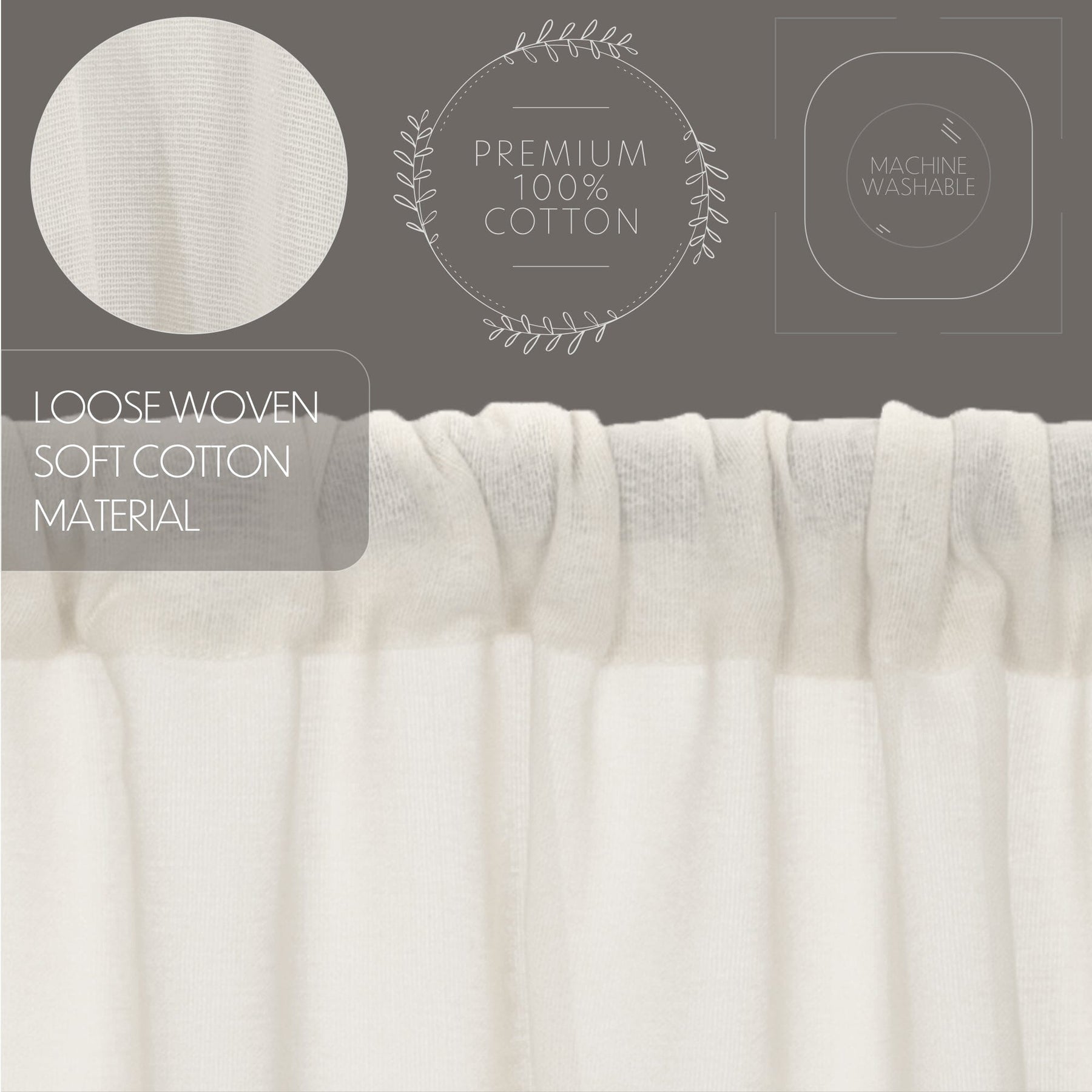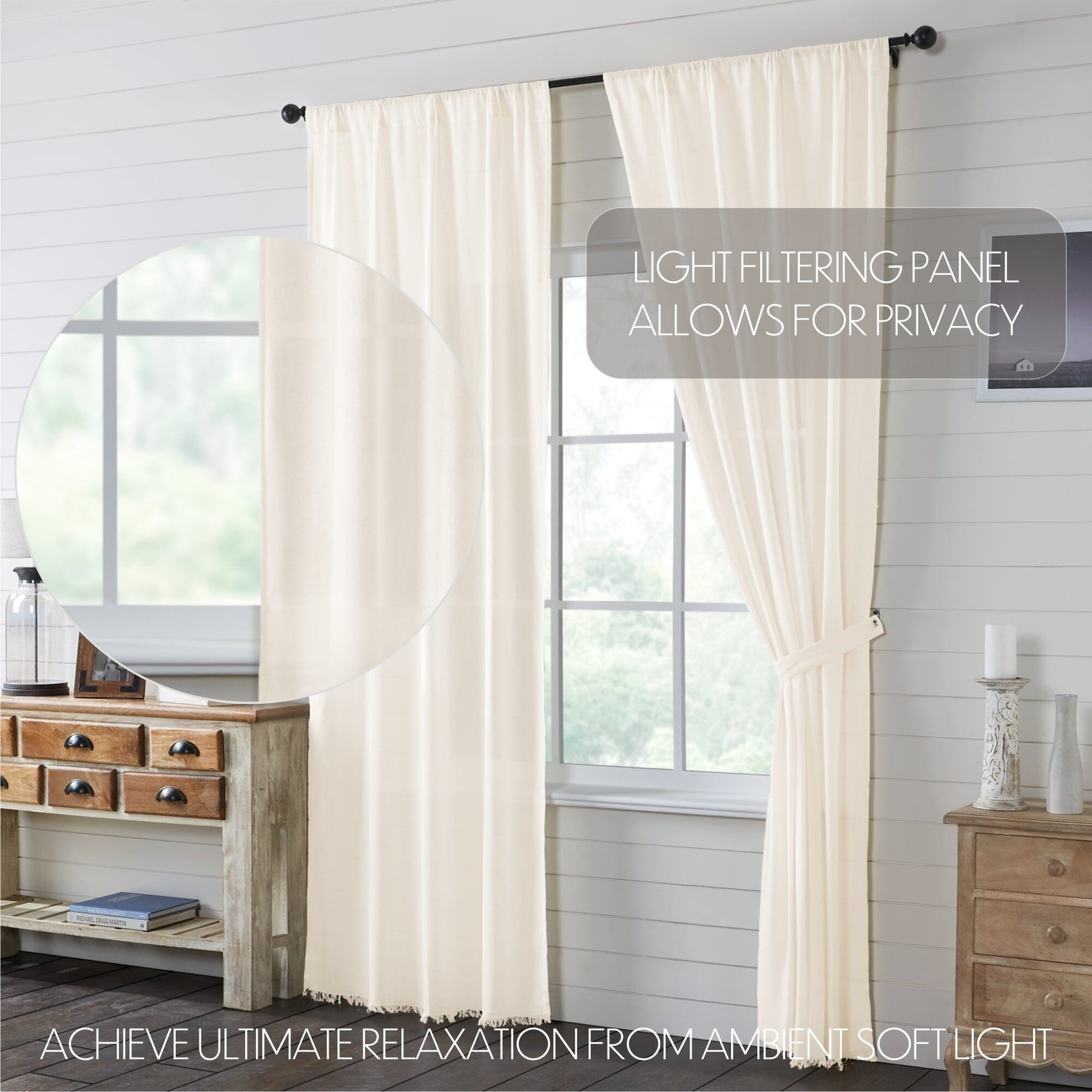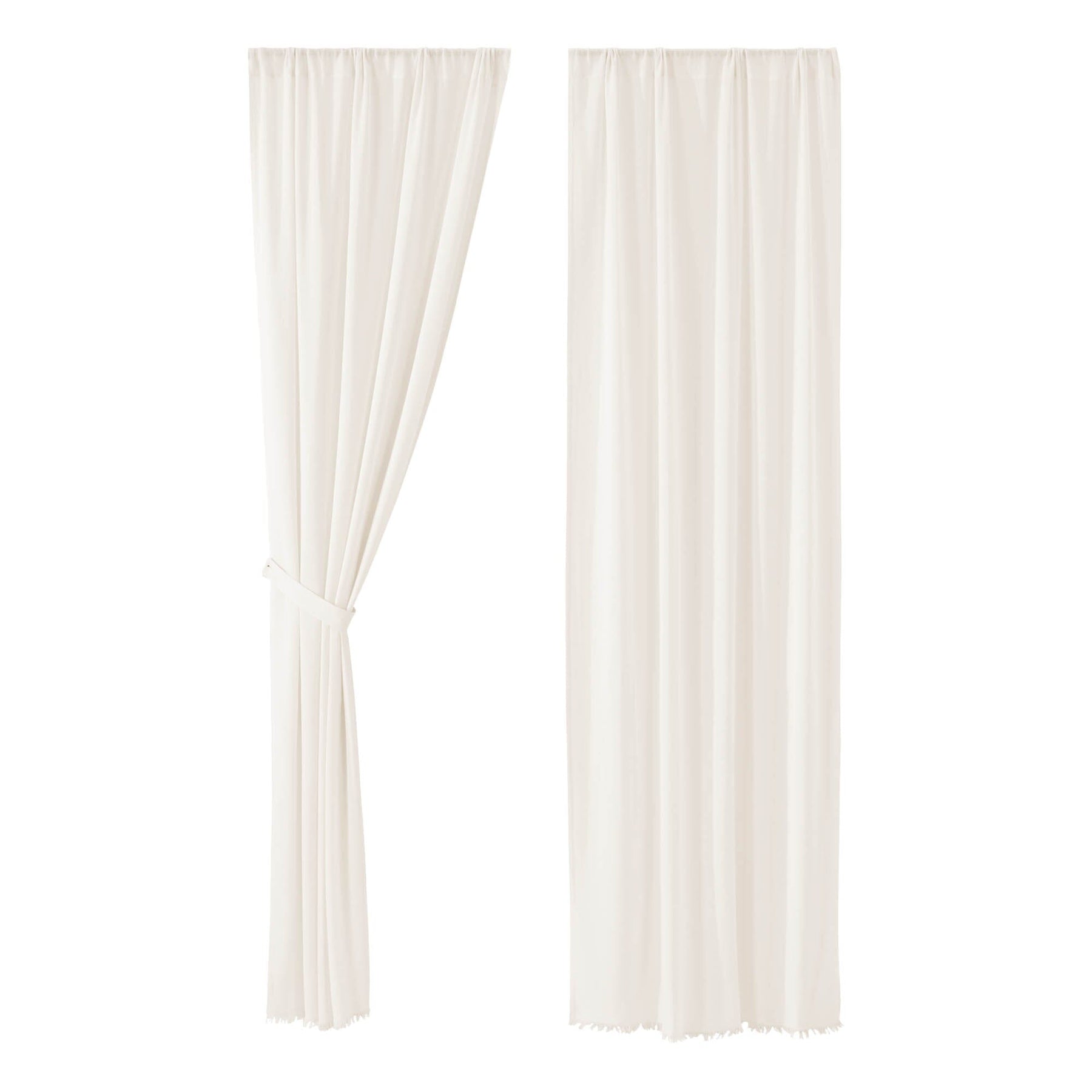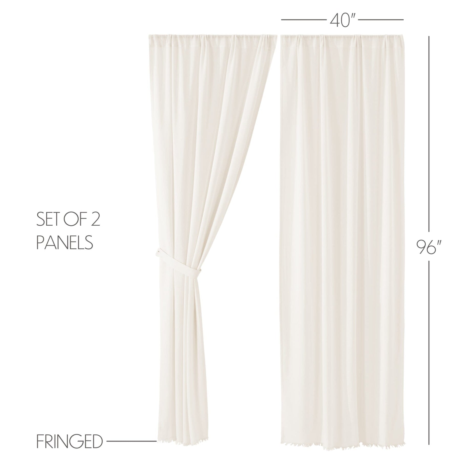 Antique White Fringed Tobacco Cloth Panel Curtains 96"