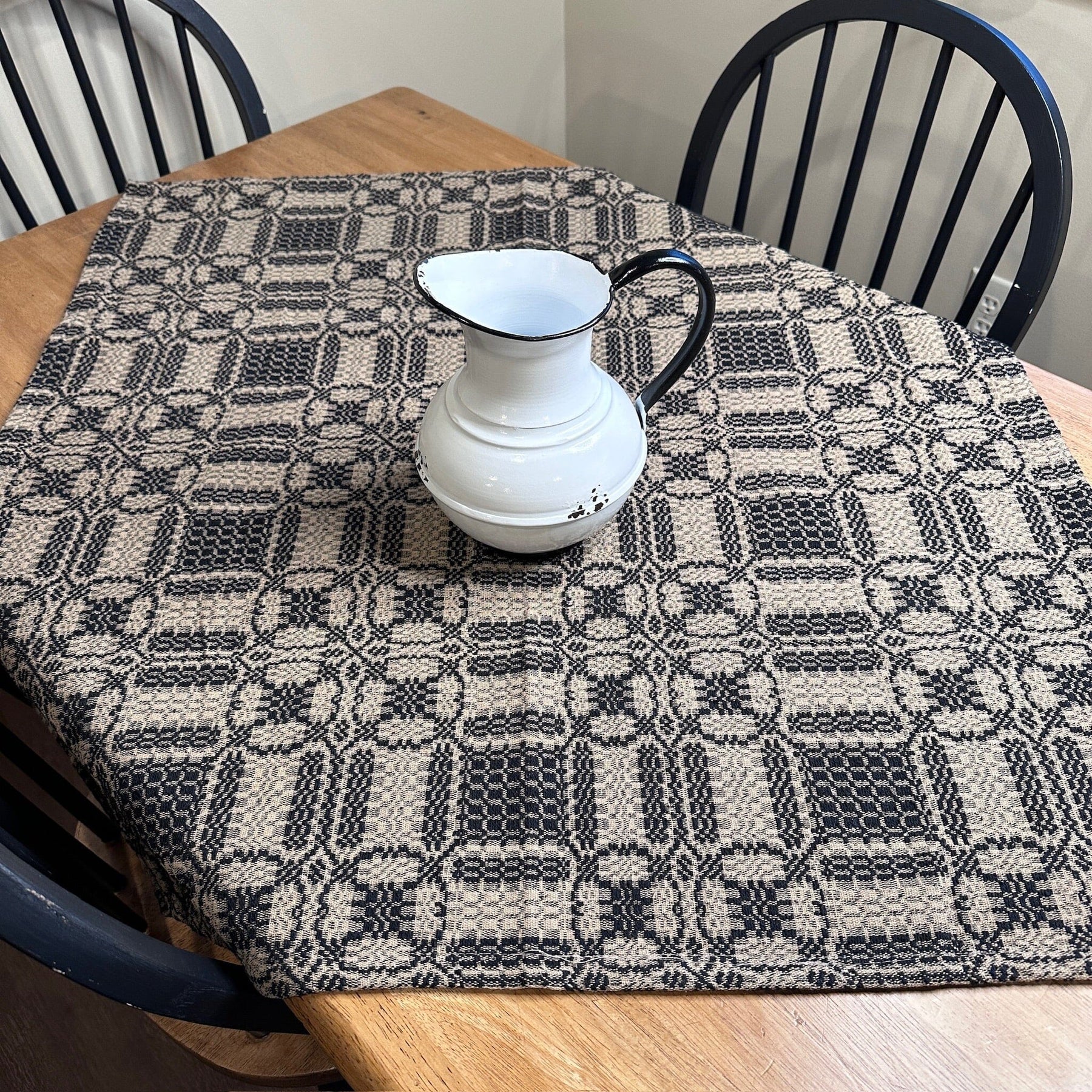 Cambridge Black and Tan Woven Small Table Cloth 34"