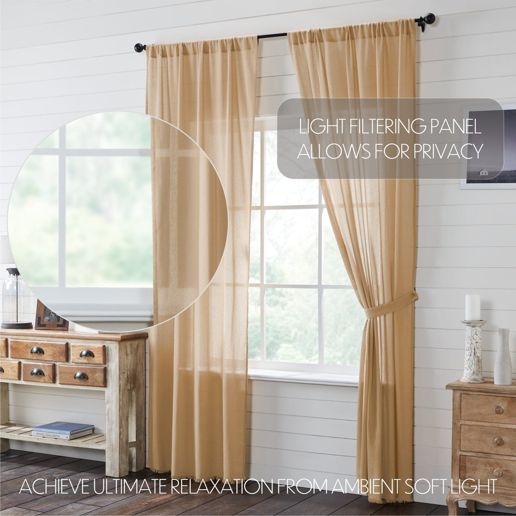 Khaki Fringed Tobacco Cloth Panel Curtains 96"